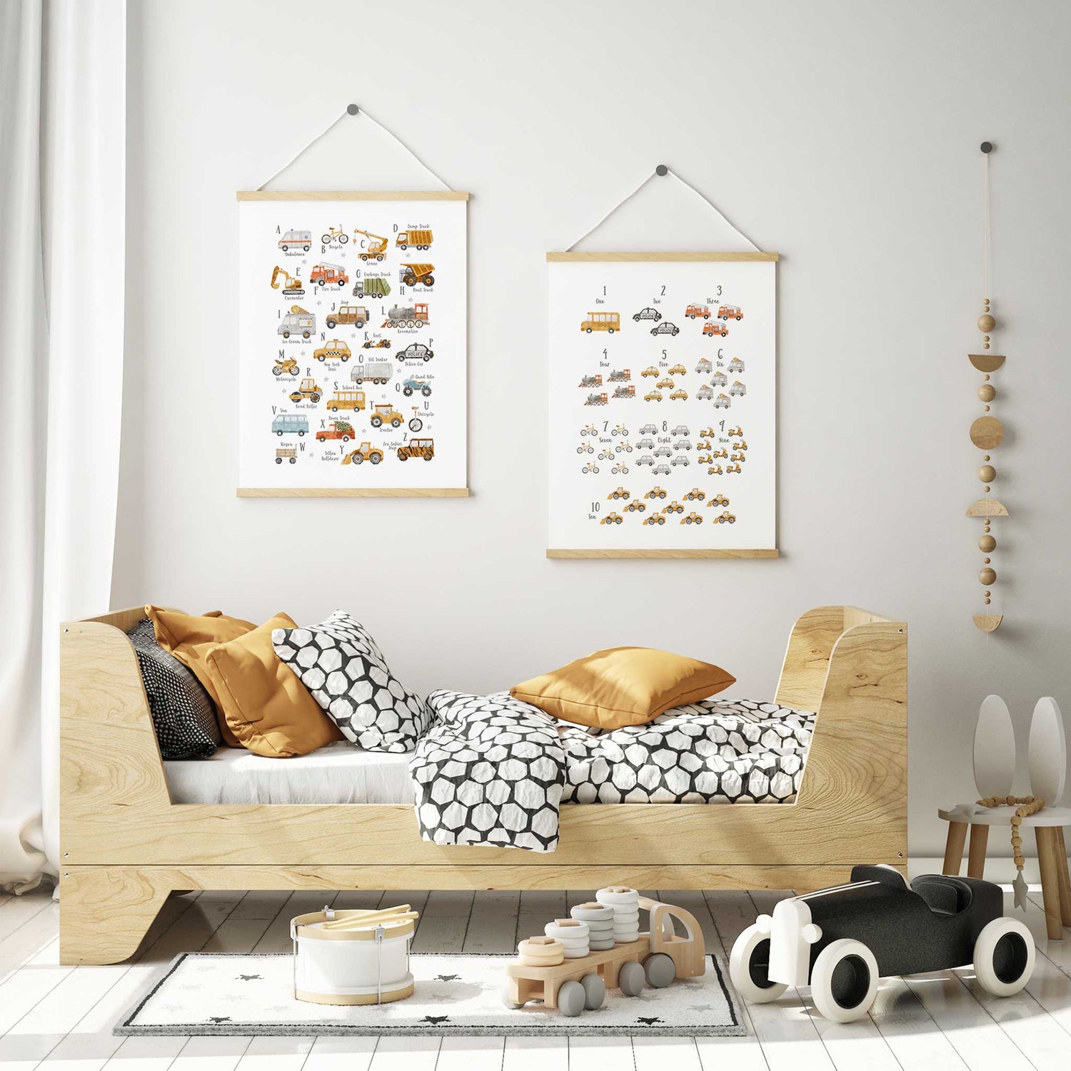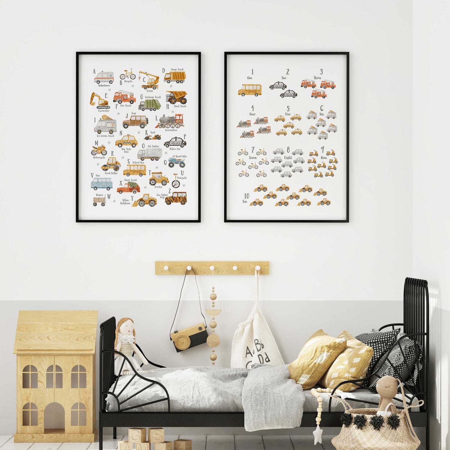 Boys Transport Alphabet and Numbers Print Set for Kids Room