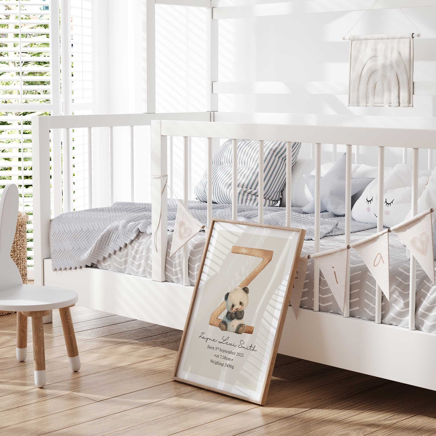 With soft watercolour tones and a gentle neutral background, this unisex design is perfect for boys or girls rooms, making it a versatile and thoughtful newborn or baby shower gift.