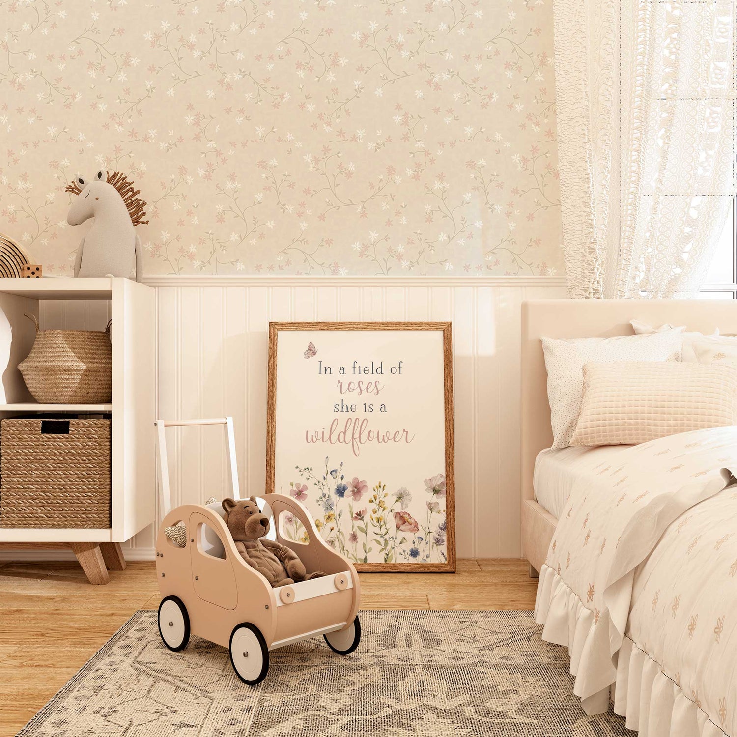 A timeless floral quote print designed to celebrate individuality and create a soft, welcoming space for little girls.