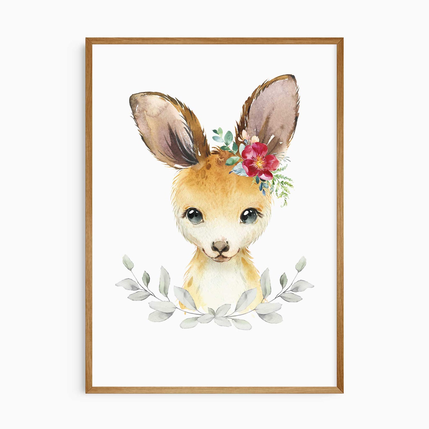 Create a soft and sweet feature wall with this floral Australian animals wall art set for girls. Featuring a kangaroo, wombat, and platypus with delicate floral crowns, this set brings gentle colour and calm charm to nursery and kids bedroom spaces.