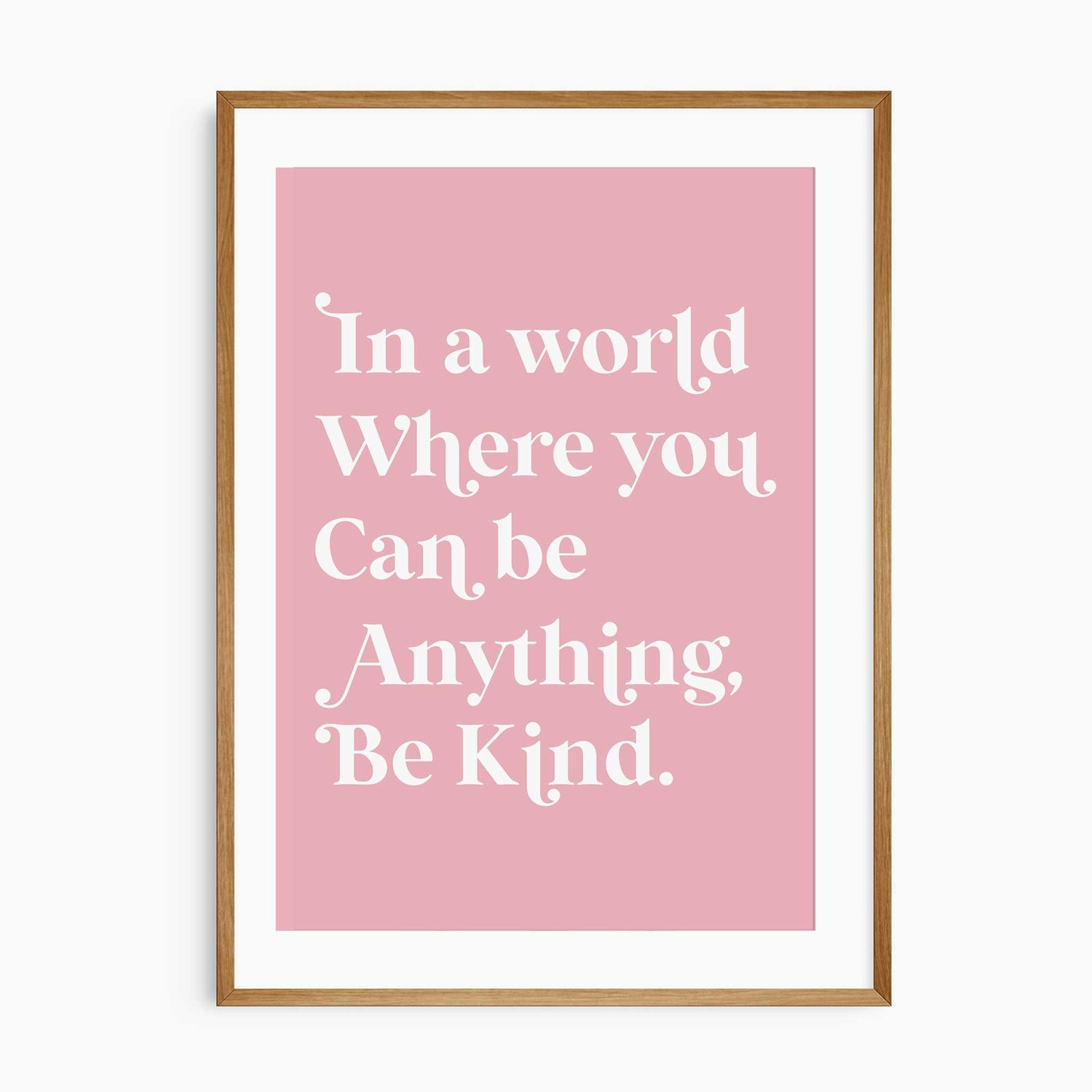 An elegant kindness quote print designed for women’s spaces and modern home interiors. Clean typography and a soft blush tone create a calm, considered piece of wall art with meaning.