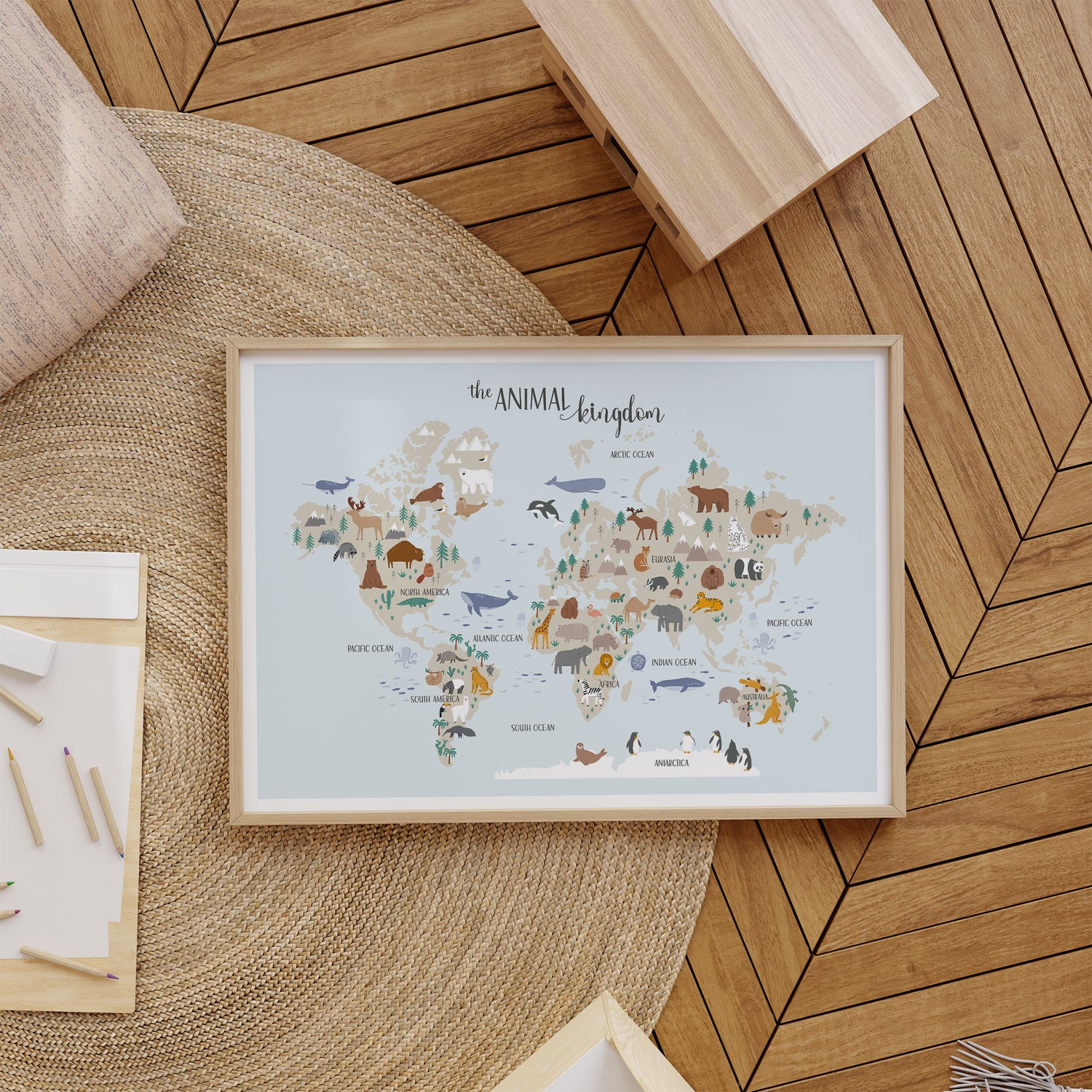 Perfect for kids’ bedrooms, playrooms, or learning spaces, this wall art sparks curiosity, encourages learning about wildlife and geography, and adds a touch of adventure to your decor.