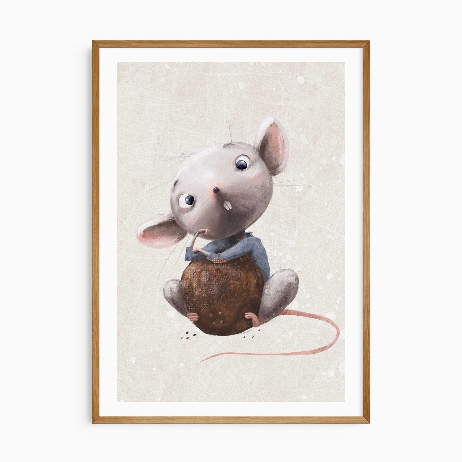 Create a dreamy, gentle look in your child’s room with this adorable mouse nursery print. Featuring a sweet hand-painted mouse holding an acorn, this artwork brings warmth, charm and a soft storybook feel to nurseries and bedrooms. The design includes a subtle white border edge for a clean, modern finish when framed.
